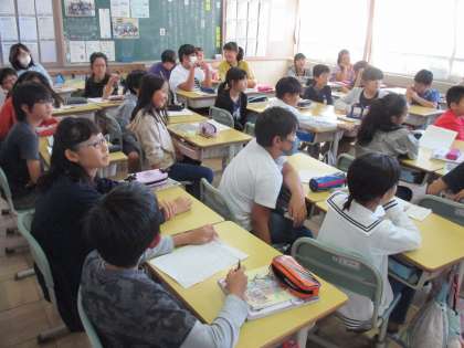 6年生が理科の授業で地震や火山の噴火による災害が起きたときに、災害から生命を守るために私たちに何ができるのか考えていました。