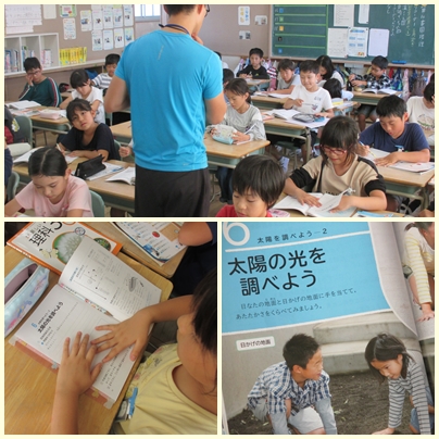 3年生が理科の授業で日光のはたらきを調べていました。日なたと日かげの違いから考えていました。地面のあたたかさがだいぶ違いました。