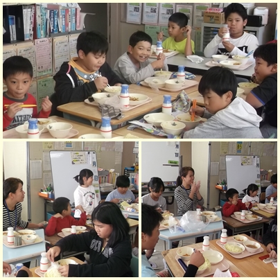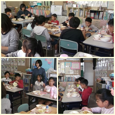 今日は、タガログ語を母国語に持つ児童が国際教室に集まって一緒に会食する、国際給食の日でした。どの子も話がはずんで楽しそうでした!