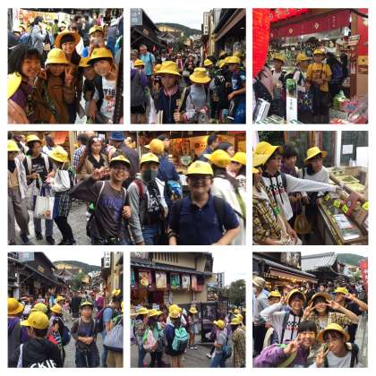 午後3時30分現在、班別行動で清水坂を散策中です!午後5時までに宿泊場所の東山閣へ歩いて行くことになっています!