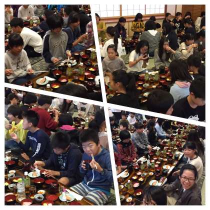 朝から美味しい朝食を食べて満足しているようです!この後、バスに乗りこみます!ごちそうさまでした!
