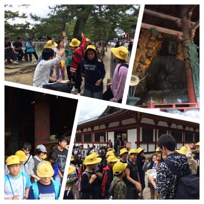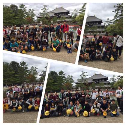 奈良公園に到着しました。鏡池の前でクラス写真を撮り、大仏殿を見学しました!その後、班別行動で奈良公園散策です!現在のところ、雨は降っていません!