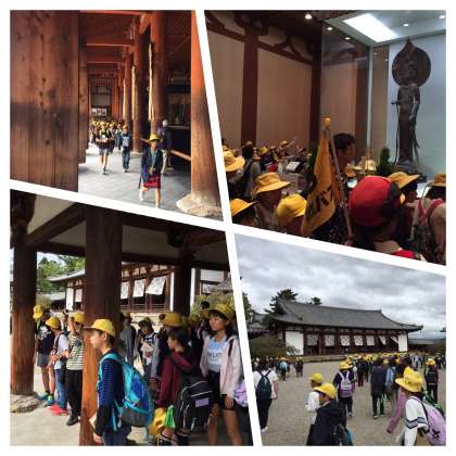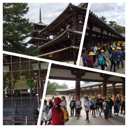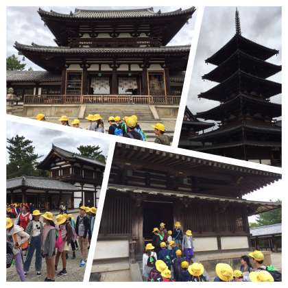 クラスごとに法隆寺を見学しました!天気も良くすべての見学を終えて、これから昼食を食べます!