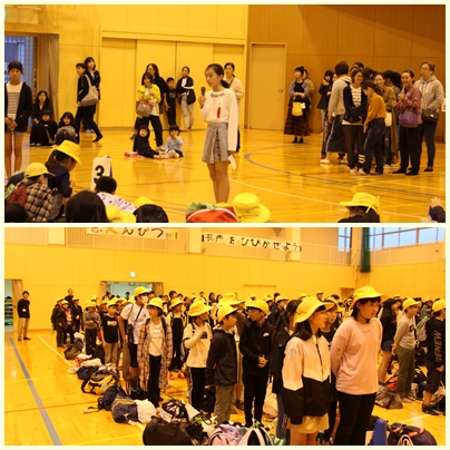 お出迎えありがとうございます!最後に雨に降られましたが、予定の時間より早く解団式を無事、終えることができました!出発前は雨が心配されましたが、見学中は一度も雨に降られることもなく、予定通り全行程を終えることができました。一人一人の思い出に残る修学旅行になりました。修学旅行に携わっていただいた、全ての方々に感謝しています。どうもありがとうございました!