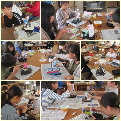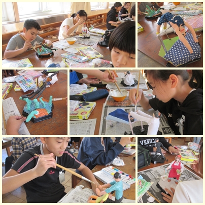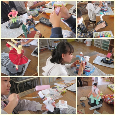 6年生の図工競技会の作品「12年後のわたし」が完成間近です!最後の仕上げでニスを表面に塗っています。