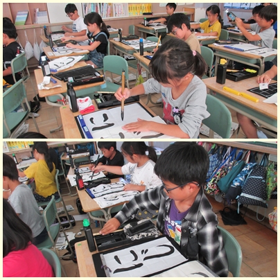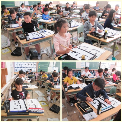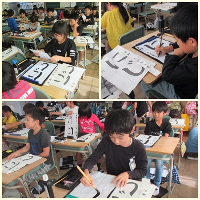 3年生が書写の授業で「にじ」を毛筆でかいていました。昨日は、即位礼正殿の儀の直前に虹がかかるファンタジーな展開で盛り上がっていました。