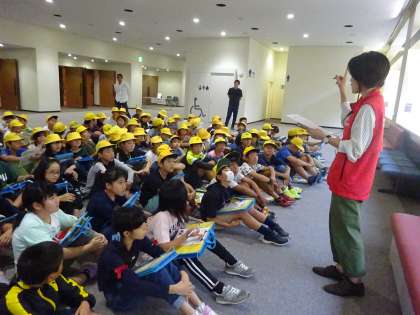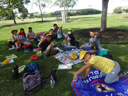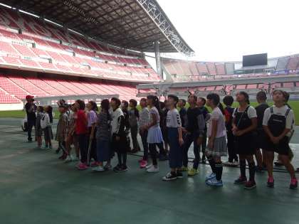 豊田スタジアムでは、お弁当を食べ、スタジアム内を見学しました。