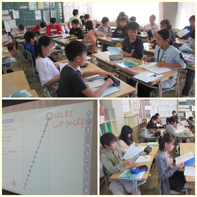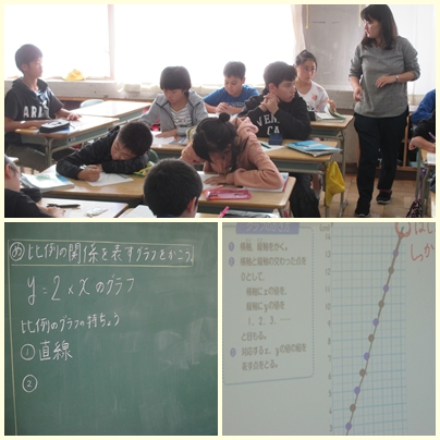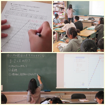 6年生が算数の授業でy=2Xのグラフを書いていました。