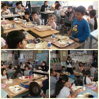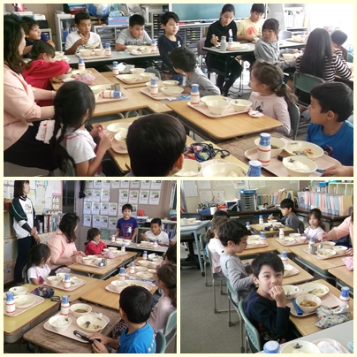今日は、ポルトガル語を母国語にもつ児童が国際教室に集まり、一緒に会食する国際給食の日でした。