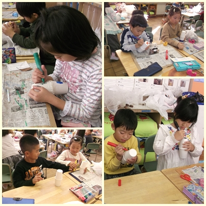 1年生が生活科の授業で秋のものを使って、マラカス作りをしていました!素敵なマラカスが完成しました!見て下さい!