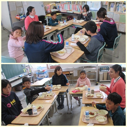 2月14日(金)今日はスペイン語を母国語にもつ児童が国際教室に集まって一緒に給食を食べる国際給食の日でした。今日は高学年の児童が2名休んでいましたのでいつもより少ない人数での国際給食になりました。