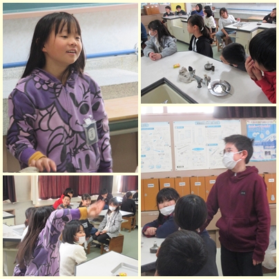 4年生が理科の授業であたためられた空気の動きを線香を使って調べていました。