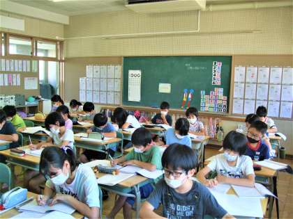算数の時間に復習に取り組みました。みんな一生懸命問題に取り組み、自分の分からないところ、間違えやすいところなどを知ることができました。
