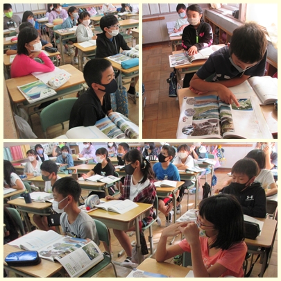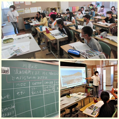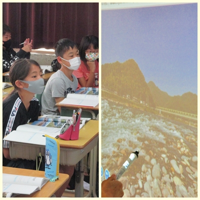 5年生が理科の授業で流れる場所によって川と川原の石の様子などにはどのような違いがあるのかデジタル教科書の写真や動画などをもとに調べていました。