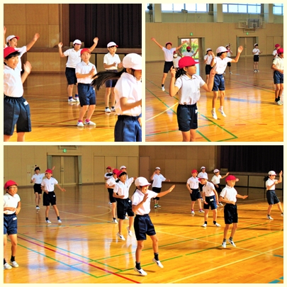 4年生が体育の授業で音楽に合わせて「よさこい節」を楽しそうに踊っていました。