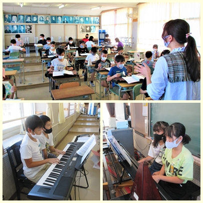 6年生が音楽の授業で「カノン」の曲を旋律の動きや重なりを聴き合って合奏していました。全員で合わせるのはなかなか難しいことですね。