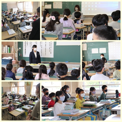 着任式・始業式の後、新しい担任の先生や友達との出会いがありました。担任の先生からの話があり、どんな学級にしていきたいのか聴いていました。新しい担任の先生の話を聴く子どもたちの目はきらきらと輝いていました。新しい教科書や副読本も配付されていました。
