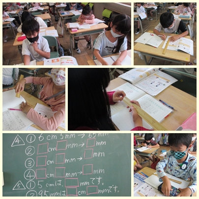 ミリメートル(2年生) 公開日 2021/05/21 更新日 2021/05/21 2年生 2年生が算数の授業で8センチ5ミリが何ミリになるかを求めていました。1センチは10ミリだということを使って考えていました。 いいね(0)
