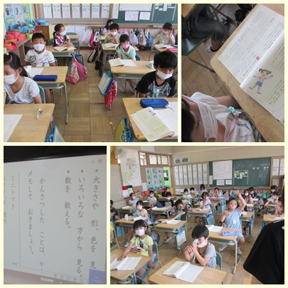 2年生が国語の授業で丁寧に観察して記録するためには、どうすればよいのか学んでいました。様子や動きを丁寧に観察するために、大きさや形、色を見る。色々な方向から見る。数を数えながら見る。長さを測る。さわる。においをかぐなどです。そして、観察したことは簡単にメモしておくことも必要です。