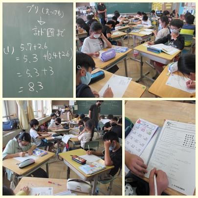 5年生が算数の授業で計算のきまりが小数のときも成立するかどうかを調べていました。