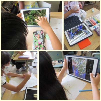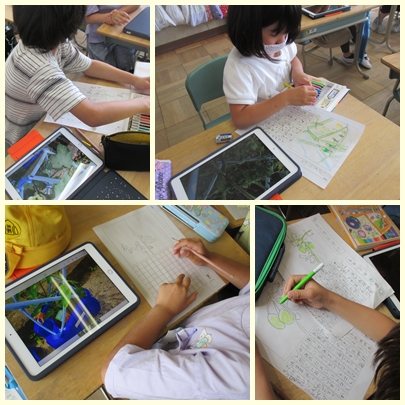 2年生が生活科の授業でタブレット端末で野菜の写真を撮ってきて、撮影した画像を見ながら、観察記録をかいていました。細部までとてもよくわかりました。