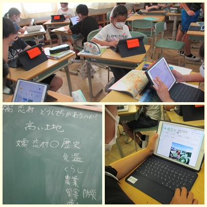 5年生が社会科の授業で群馬県嬬恋村の人々が山に囲まれた高原を利用してどのようなくらしや産業などをしているのか調べていました。