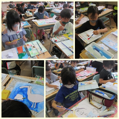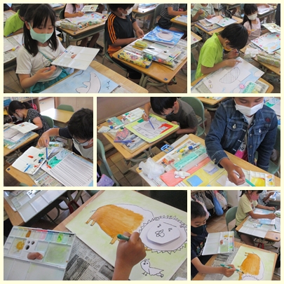 3年生が図工の授業で絵の中に開く仕組みをつくって、開くことで広がる世界を楽しそうに表現していました。