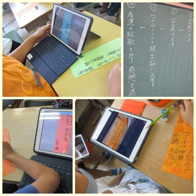 6年生が国語の授業で短歌をつくって、ロイロノートで発表して友達の作品をよんだ感想を書き込んでいました。