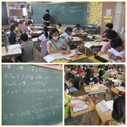 5年生が算数の授業で小数÷小数の計算の仕方を考えていました。わる数を整数にする方法で考えていました。
