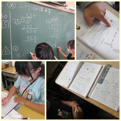 複雑な小数のわり算の筆算(5年生) 公開日 2021/06/16 更新日 2021/06/16 5年生 5年生が算数の授業で2.55÷7.5や8÷2.5等の小数のわり算を筆算でわり切れるまで計算していました。 いいね(0)