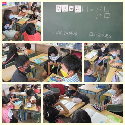 3年生が算数の授業で35+24や35+27、73+42や73+48などを暗算でする方法を学んでいました。くり上がる場合とくり上がらない場合がありますので、気をつけないといけません。