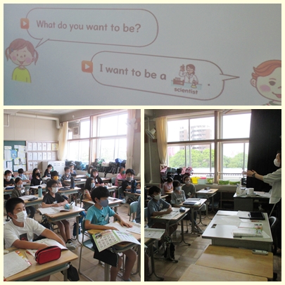 5年生が英語の授業で学びたい教科やなりたい職業をたずねて答える会話文を学んでいました。「What do you want to study ?」「I want to study science.」「What do you want to be ?」「I want to be a scientist.」