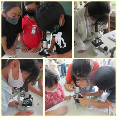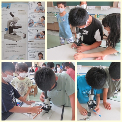 5年生が理科の授業で顕微鏡の使い方を学んでいました。これから微生物や花粉などを観察していくためです。