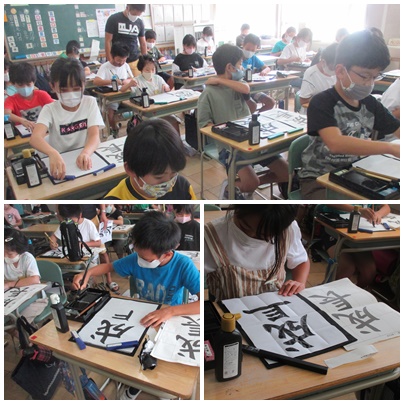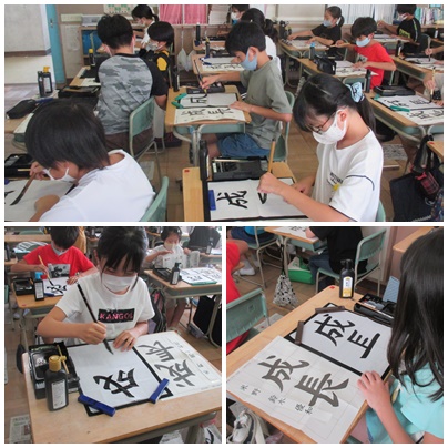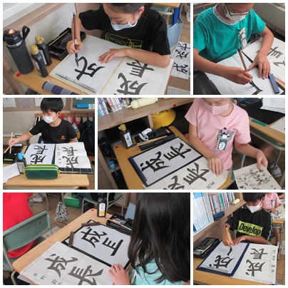 5年生が書写の授業で「成長」を毛筆でかいていました。筆順に気をつけながらかいていました。