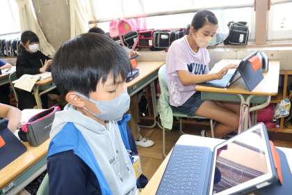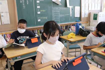6年生の国語の授業で「たのしみは」というお題で短歌をつくる学習をしていました。