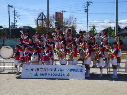 カラーガード部・ブラスバンド部の子どもたちの,小牧小学校での待機中の様子です。緊張している子もいれば,そうでない子も……。