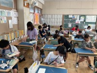 外部講師の方を招いて5年生を対象に福祉実践教室を行いました。点訳体験、アイマスク...