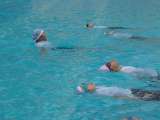服を着て泳ぐときの重たい感覚をつかみました。長袖長ズボンで、くつをはいたまま水...