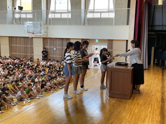 そして、八ツ八祭の習字、6年生児童のよい歯の表彰がありました。