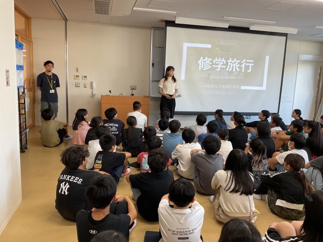 修学旅行についての話があり、今回は目的や行程を確認しました。