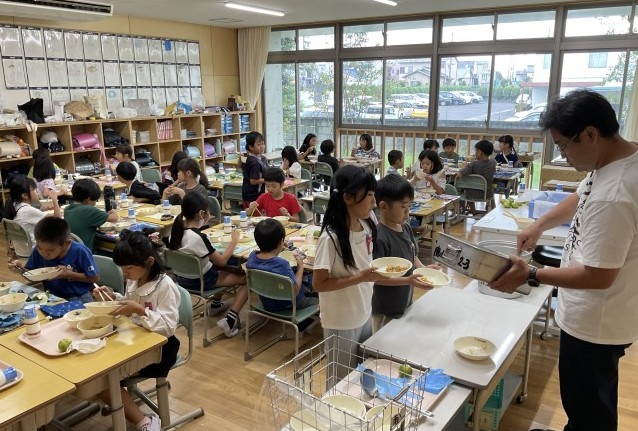 2年生の教室では、豚キムチが特に人気だったようです。おかわりしたい子が多すぎて、結局ジャンケンになったクラスもありました。白菜だけでなく玉ねぎやごぼうも入っていて、美味しかったですね。