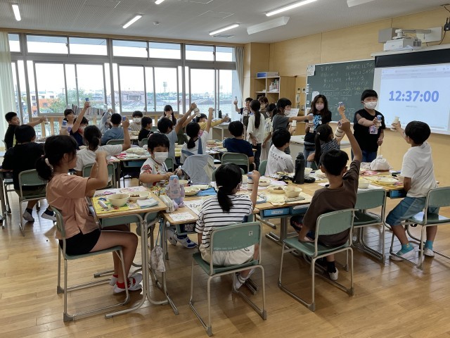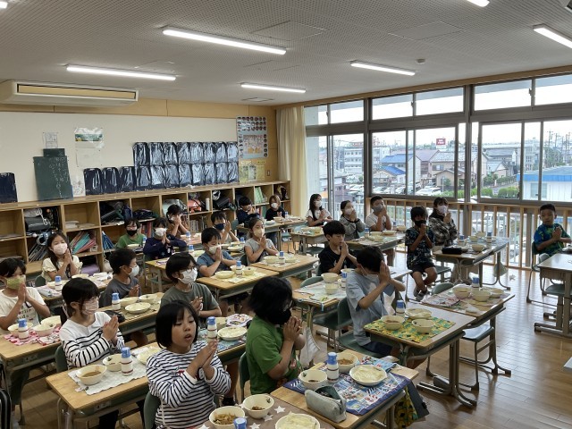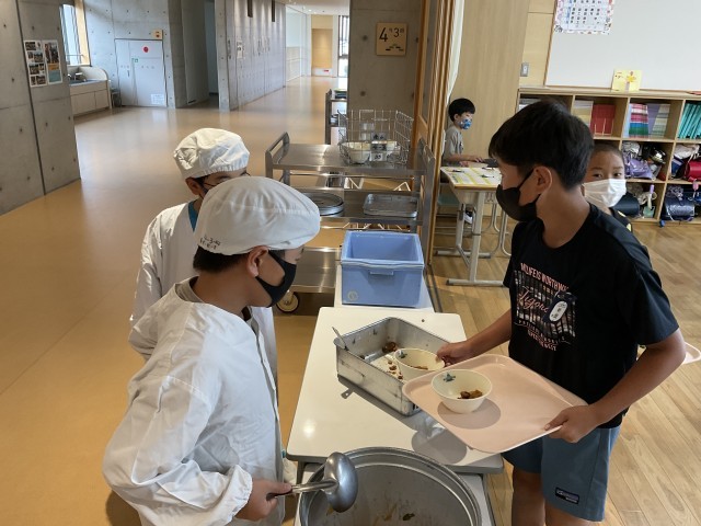 買い物に行くと、食品売り場にさつまいもがたくさん並ぶ季節になりましたね。皆さんの家では、どんなさつまいも料理をしますか?食事としてもたくさんの献立がありますし、おやつとしてもいろいろなレシピがありますよね。4年生の教室では、今日も協力しあって落ち着いた配膳ができていました。