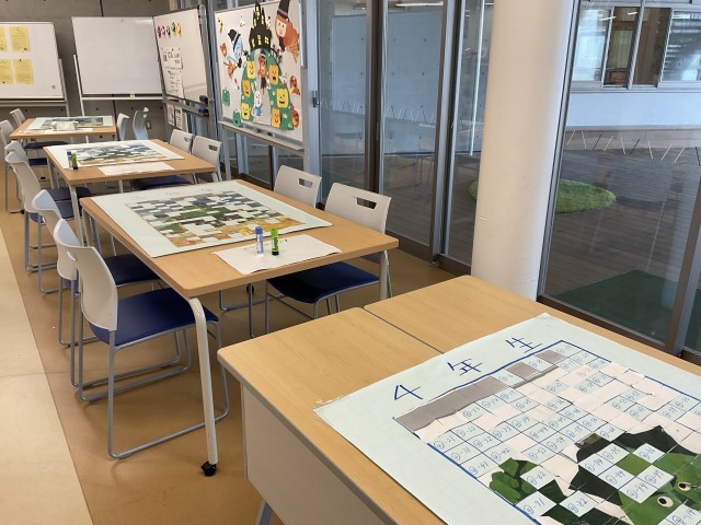 本を借りると、カードを一枚ひくことができます。そのカードを各学年のパズルに貼って、パズルを完成させていきます。