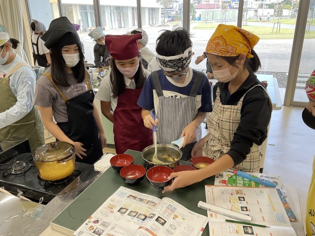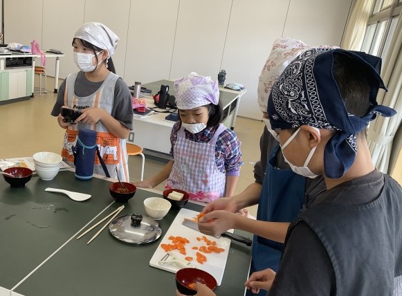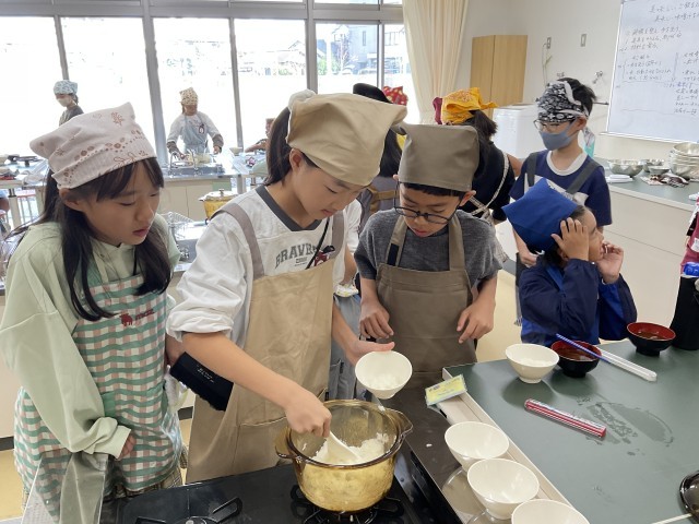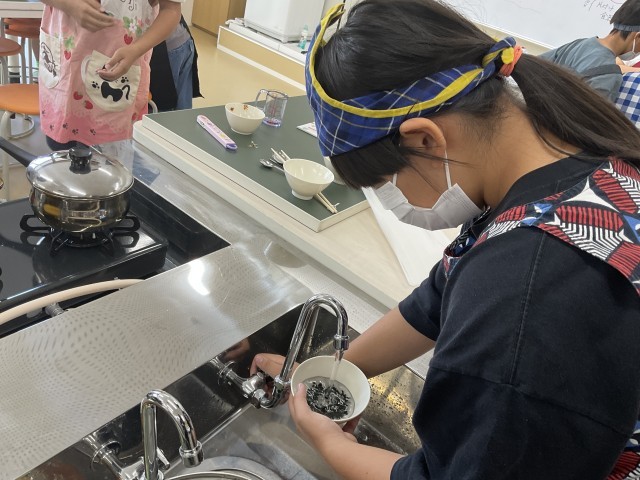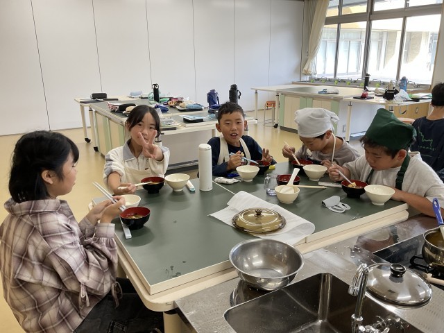 5年生の2つのクラスが、2時間ずつ調理実習をしていました。