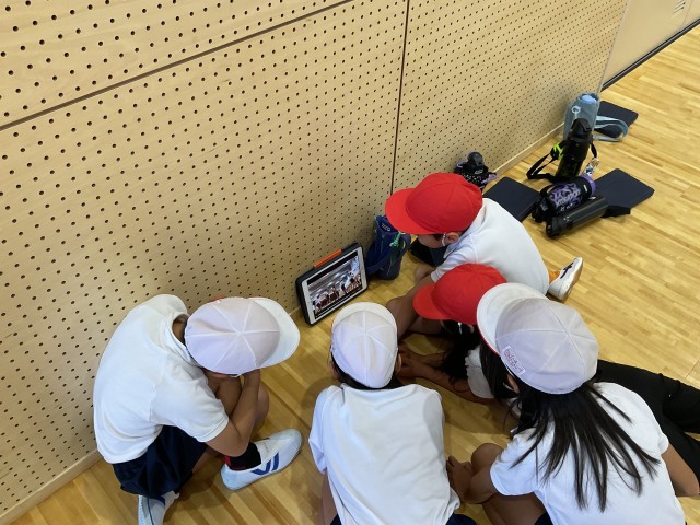 各グループで目標を決めて取り組んでいます。タブレットを使いながらダンスを撮影したり、自分たちの動きを確認していました。
