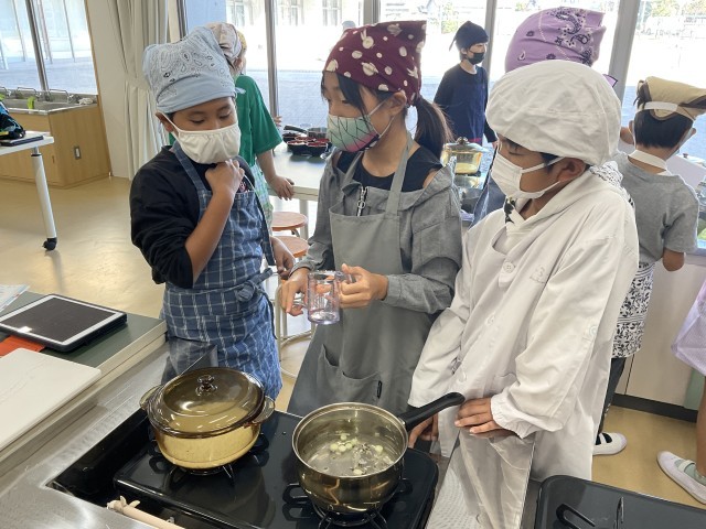 鍋をみんなでのぞき込んだり、教科書で一緒に手順を確認したりと、グループで協力し合っている姿がとてもよかったです。