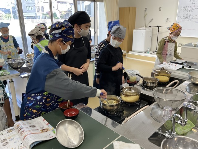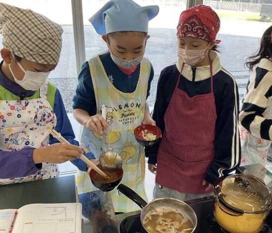 今日も家庭科室から、だし汁のよいにおいがしてきました。