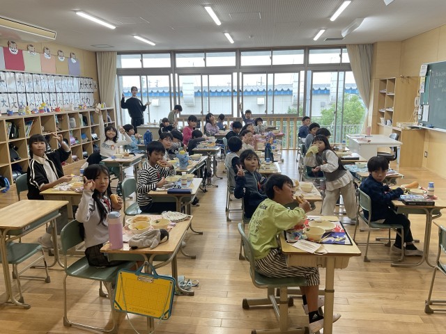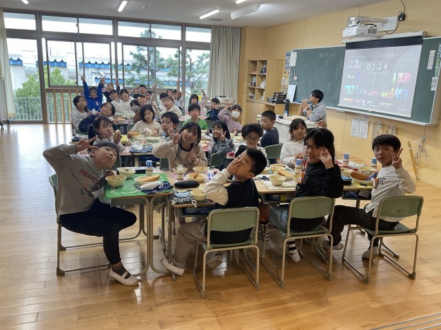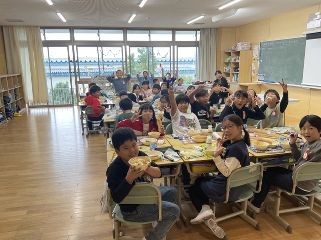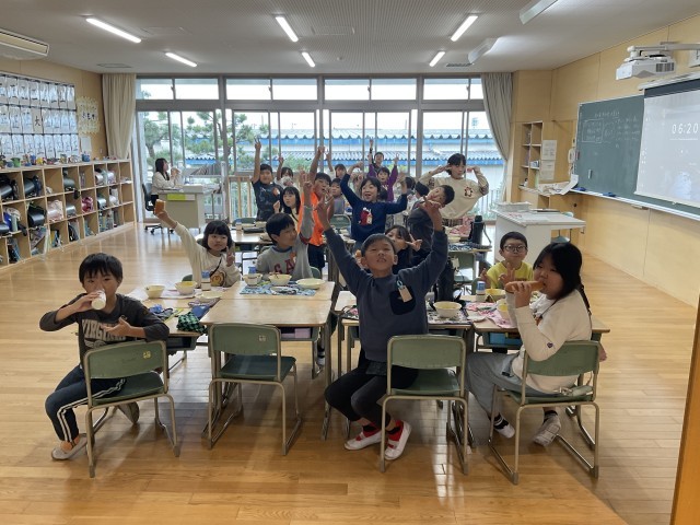 本日の献立は、ロールパン、牛乳、パンプキンポタージュ、焼きウインナー、野菜のソテー、コーヒー牛乳のもと、でした。ハロウィンの日にちなんだパンプキンポタージュが美味しかったですね。