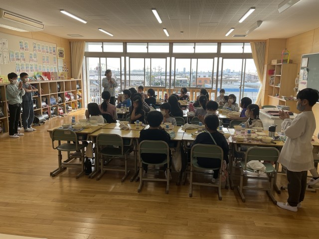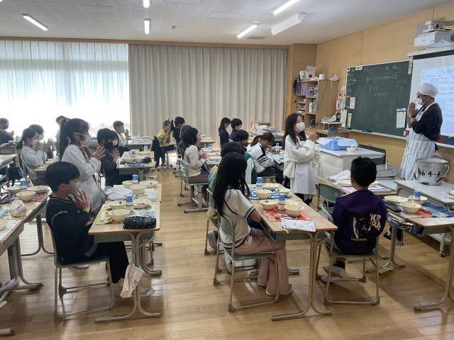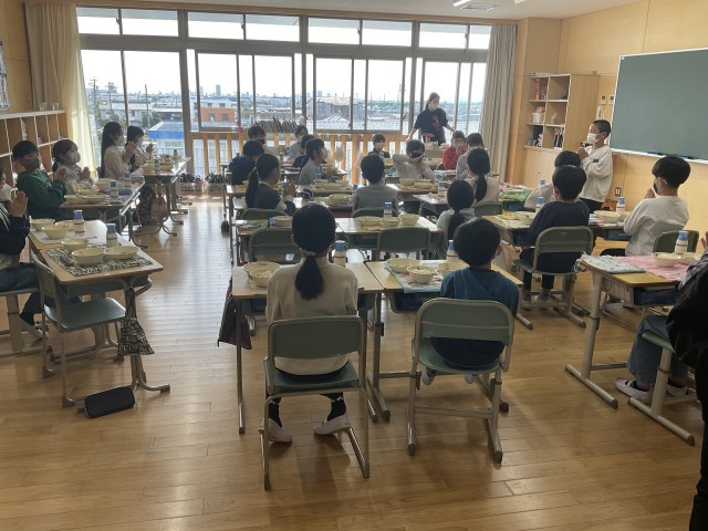4年生の教室におじゃますると、みんなの元気のよい「いただきます」の声が響いていました。