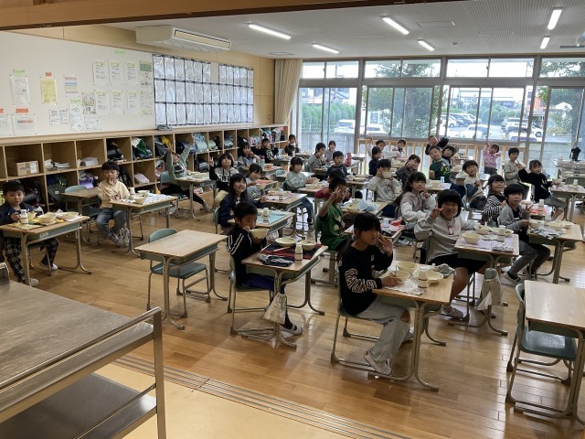 2年生の教室におじゃまするとビビンバをごはんと混ぜておいしそうに食べていたり